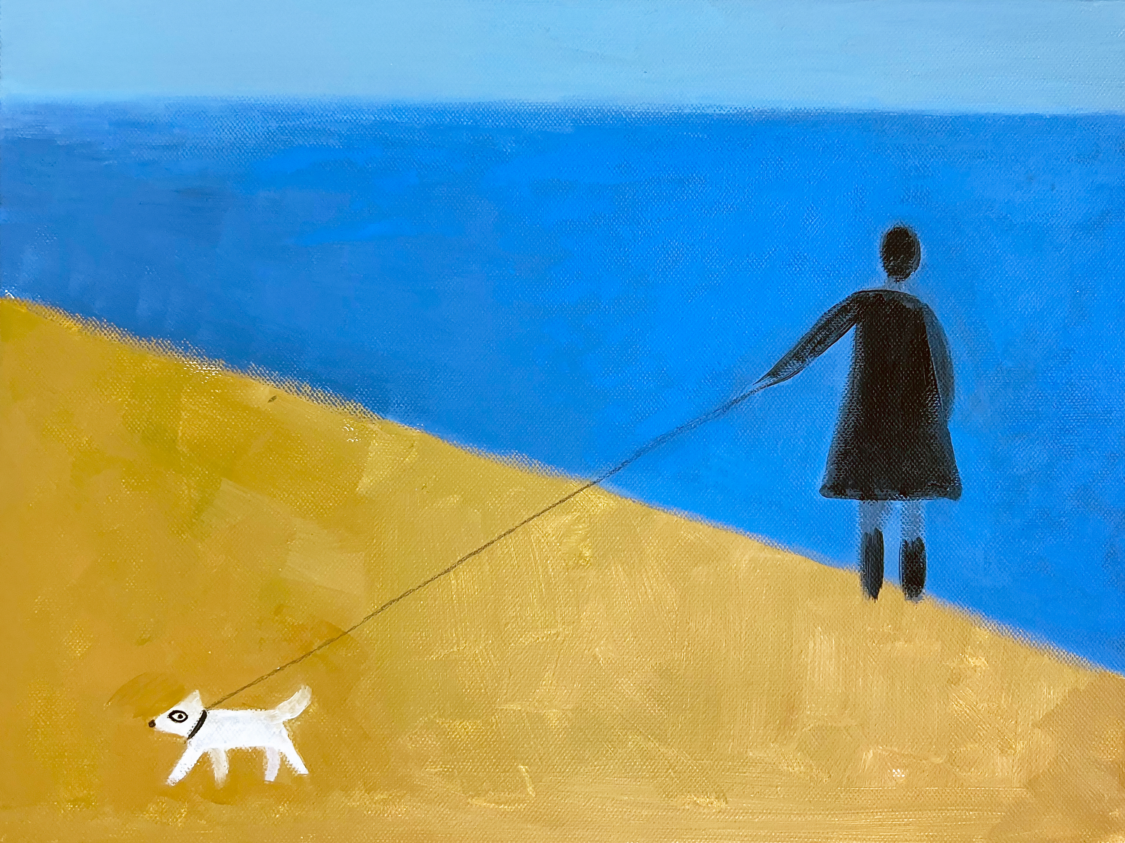 «A lady with a dog» 30/40 cm, Oil on canvas, 2023, Vitemölla.