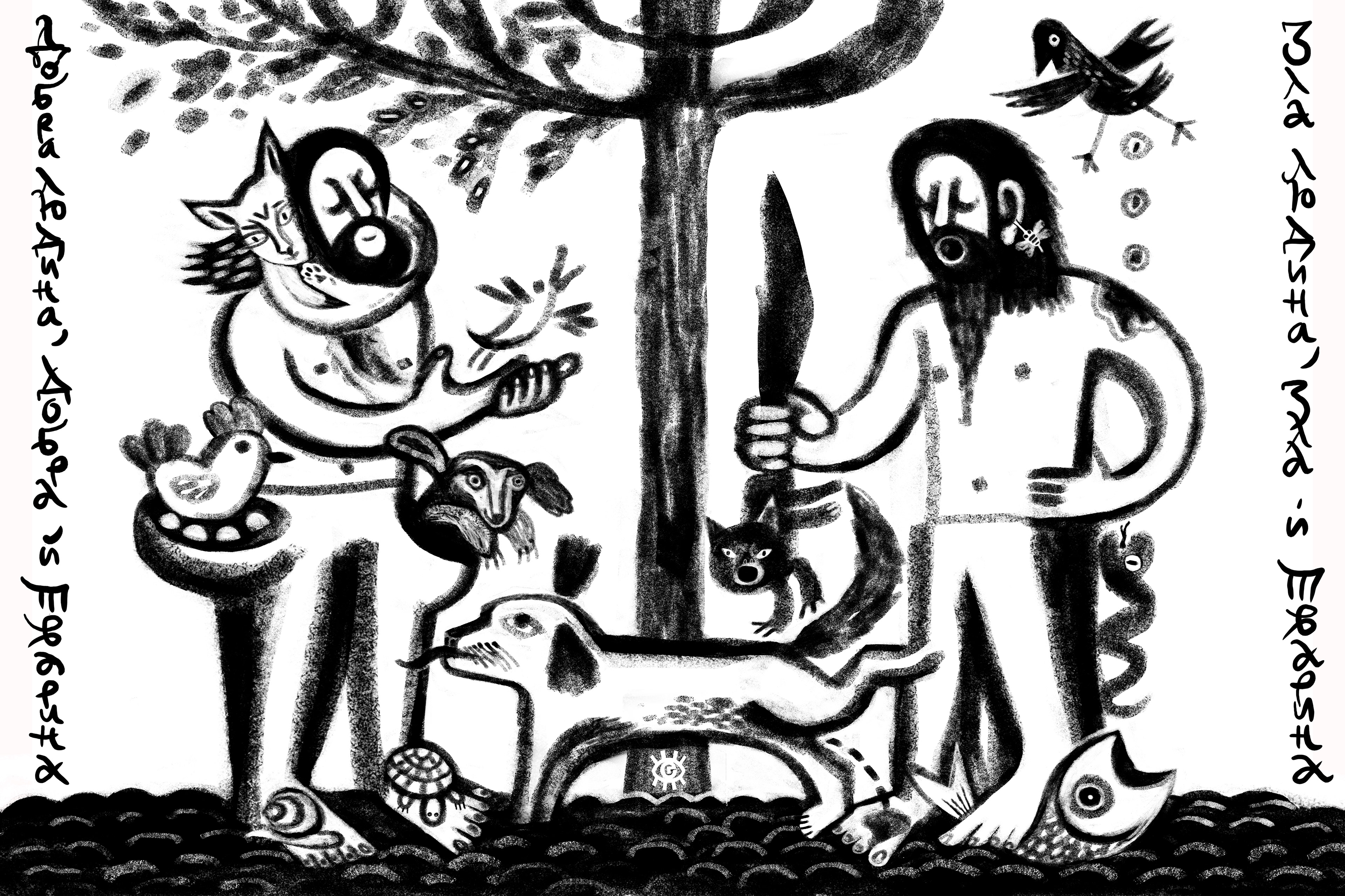 Good man, good and animal. Evil man, evil and animal.